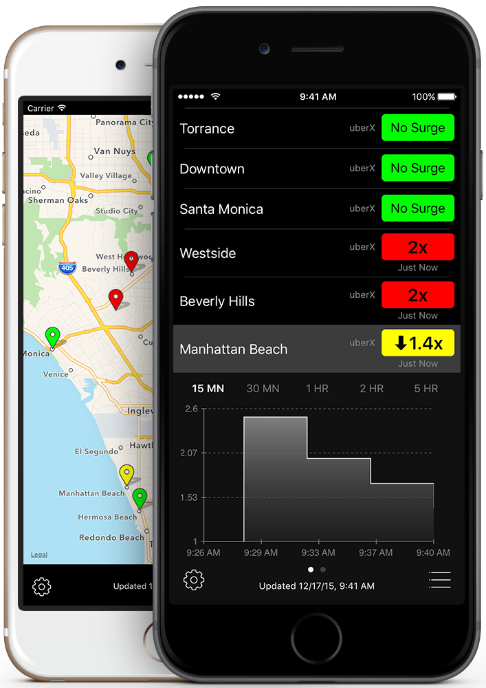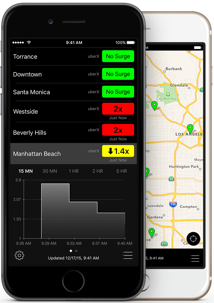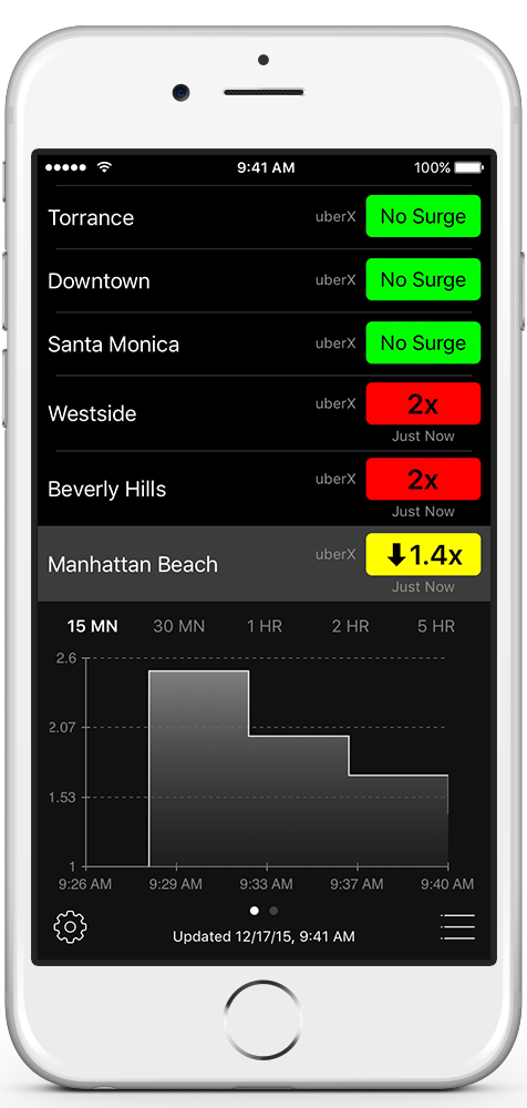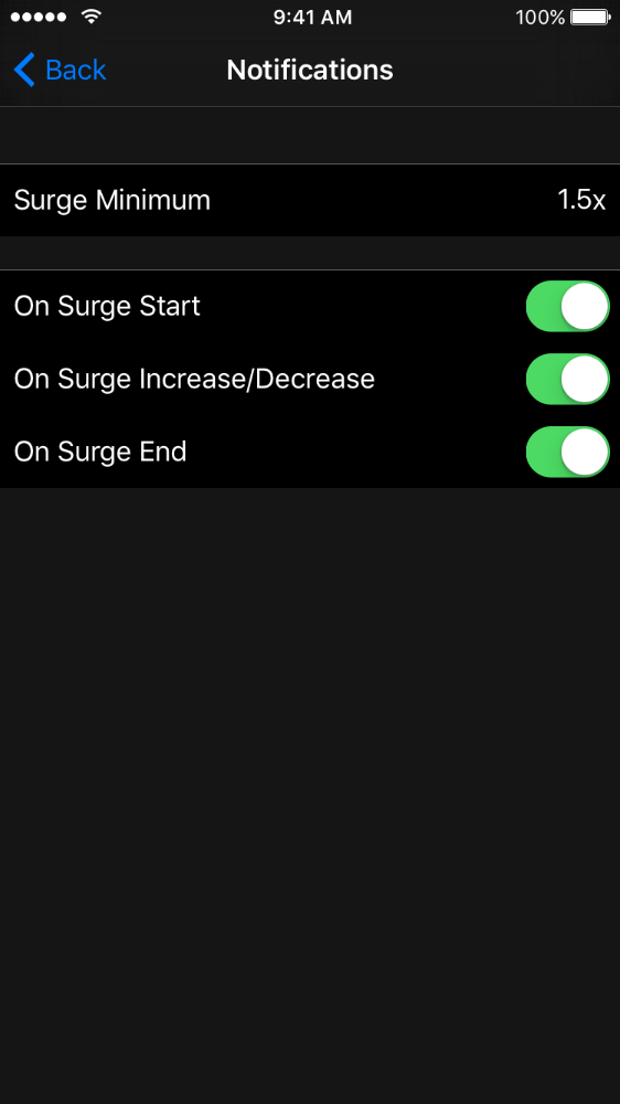 Get notifications when a surge starts, changes, and ends. Custom tailor per location, notification types and the minimum surge multiplier.